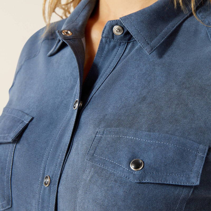 - Snap-front closure with onyx snaps