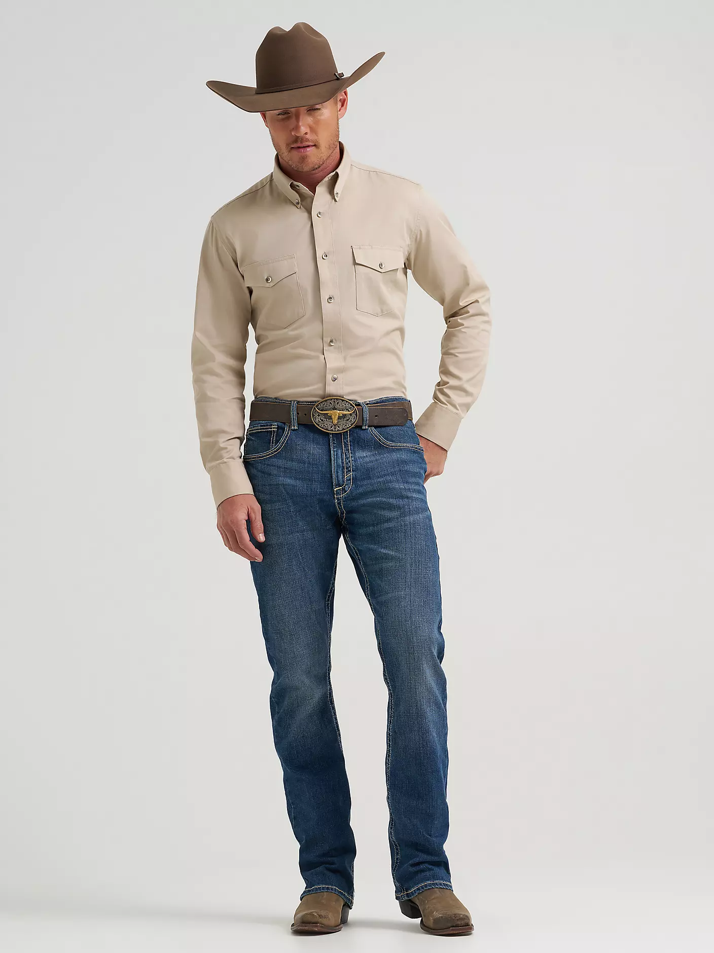 Wrangler® 20X® vintage bootcut jeans combine the comfort you want with the durability you need to take on each day with confidence. No. 42 jeans from the Wrangler® 20X® collection are finished with distressed detailing for an instant broken-in appeal. They sit just below the waist for a casual look you can wear on any occasion. They also feature a slim seat and thigh as well as a full opening from the knee down to leave room for your boots. The Wrangler® 20X® vintage bootcut jeans are available in a variety of washes. Best of all, each jean comes with bold embroidery on the back pocket to take your look to a whole new level.