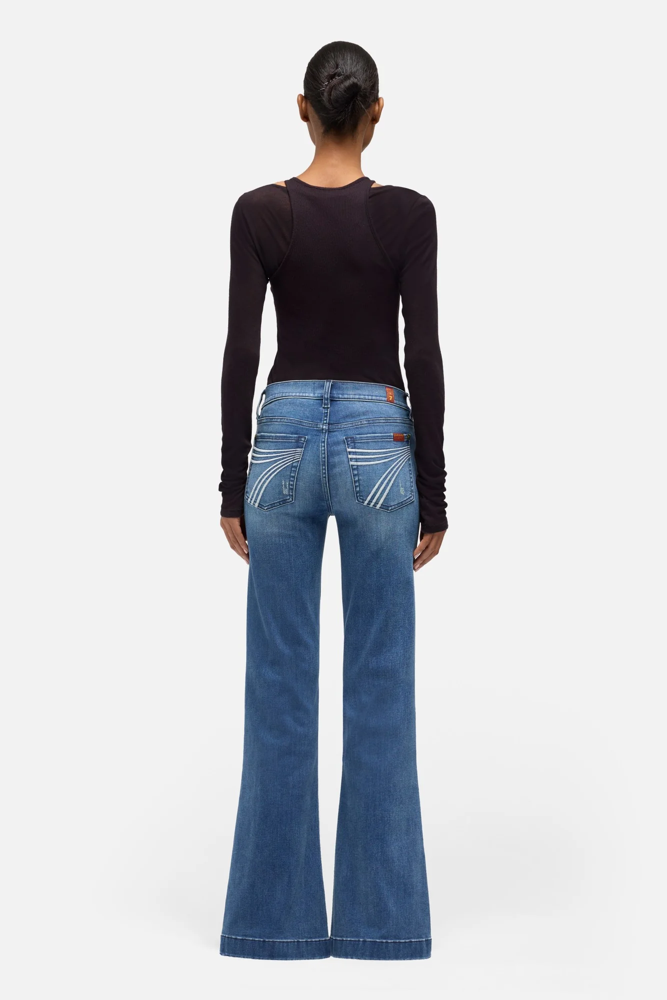 Fits like: A mid rise flare that’s snug through the waist and hips before falling into a subtle flare for a long, lean silhouette. Crafted with a 30″ inseam.