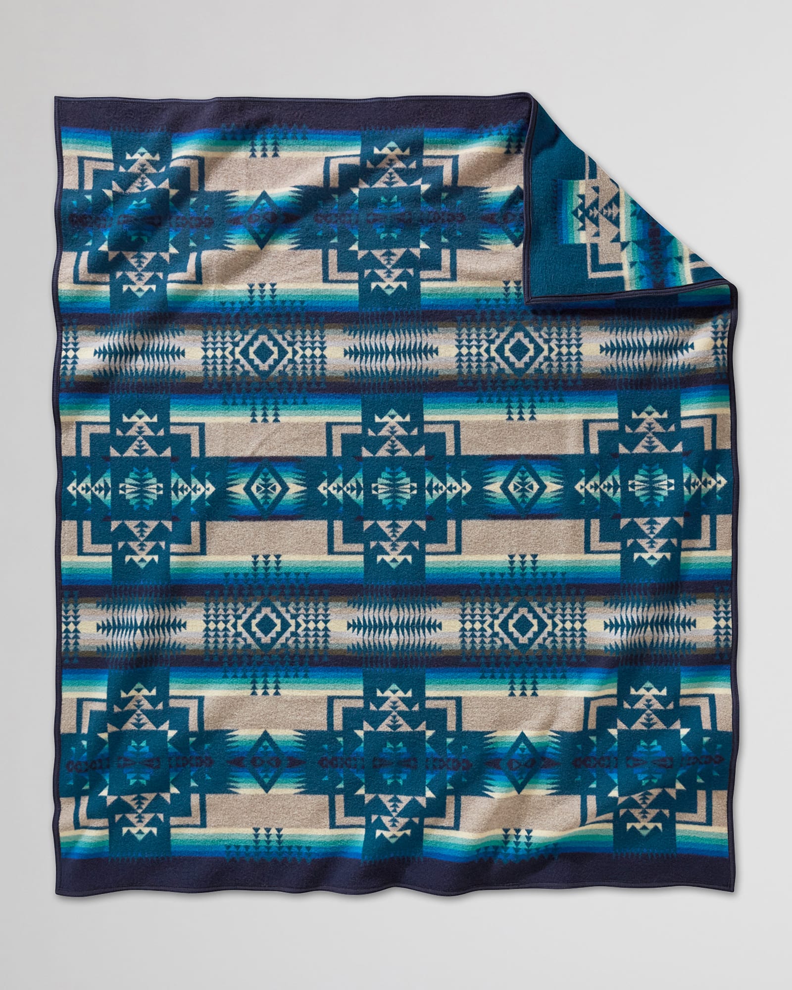 First woven in the 1920s, this USA-made wool blanket has been one of our most popular designs ever since. Chief Joseph led the Nez Perce tribe out of northeastern Oregon in the late 1800s. Widely admired for protecting his people and speaking the truth, he is honored with this design, symbolizing bravery. Bold arrowheads represent the chief’s courage, strength and integrity. Reverses for two different looks.
